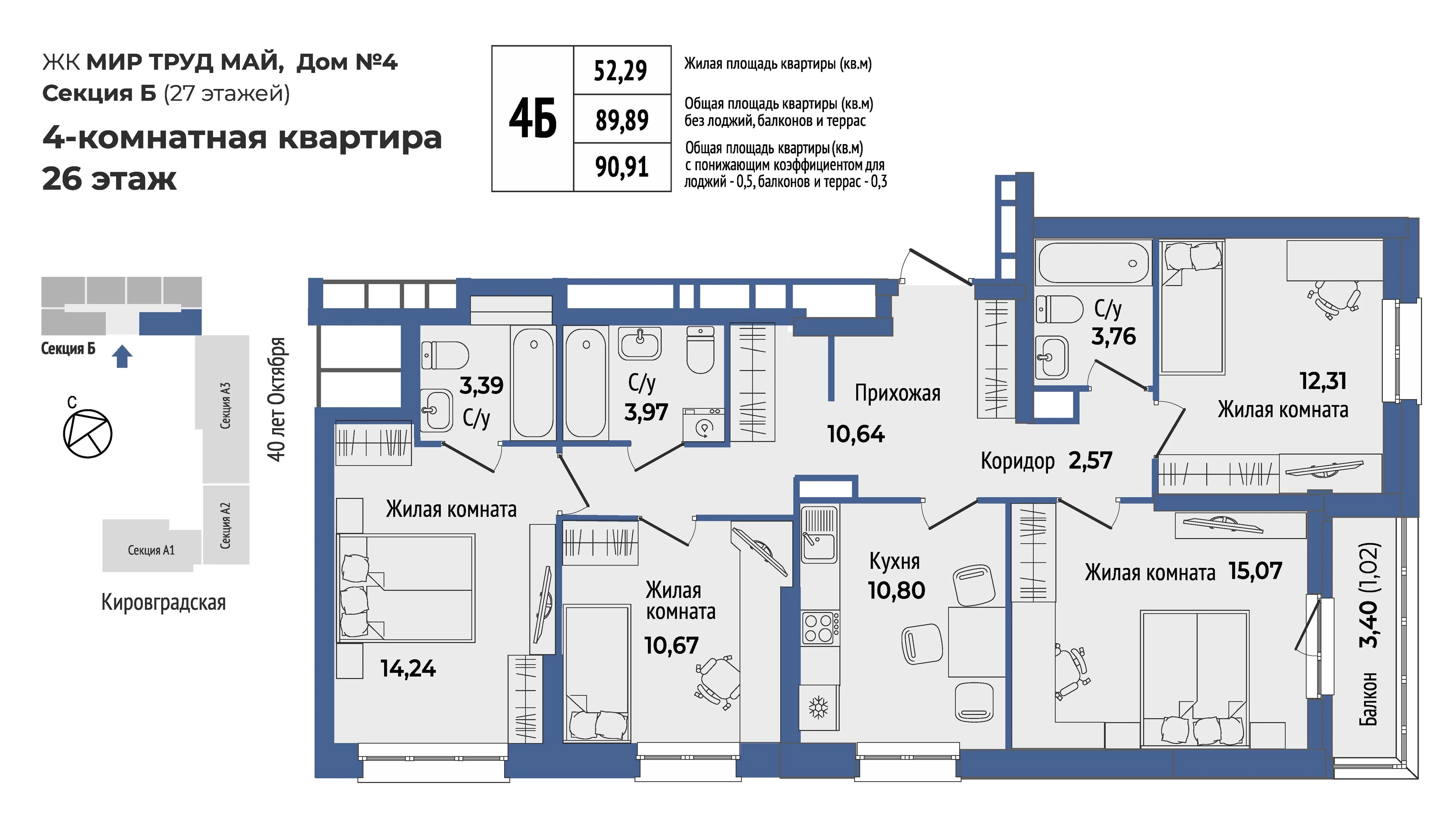4-комнатная квартира №2044-комнатная квартира №204