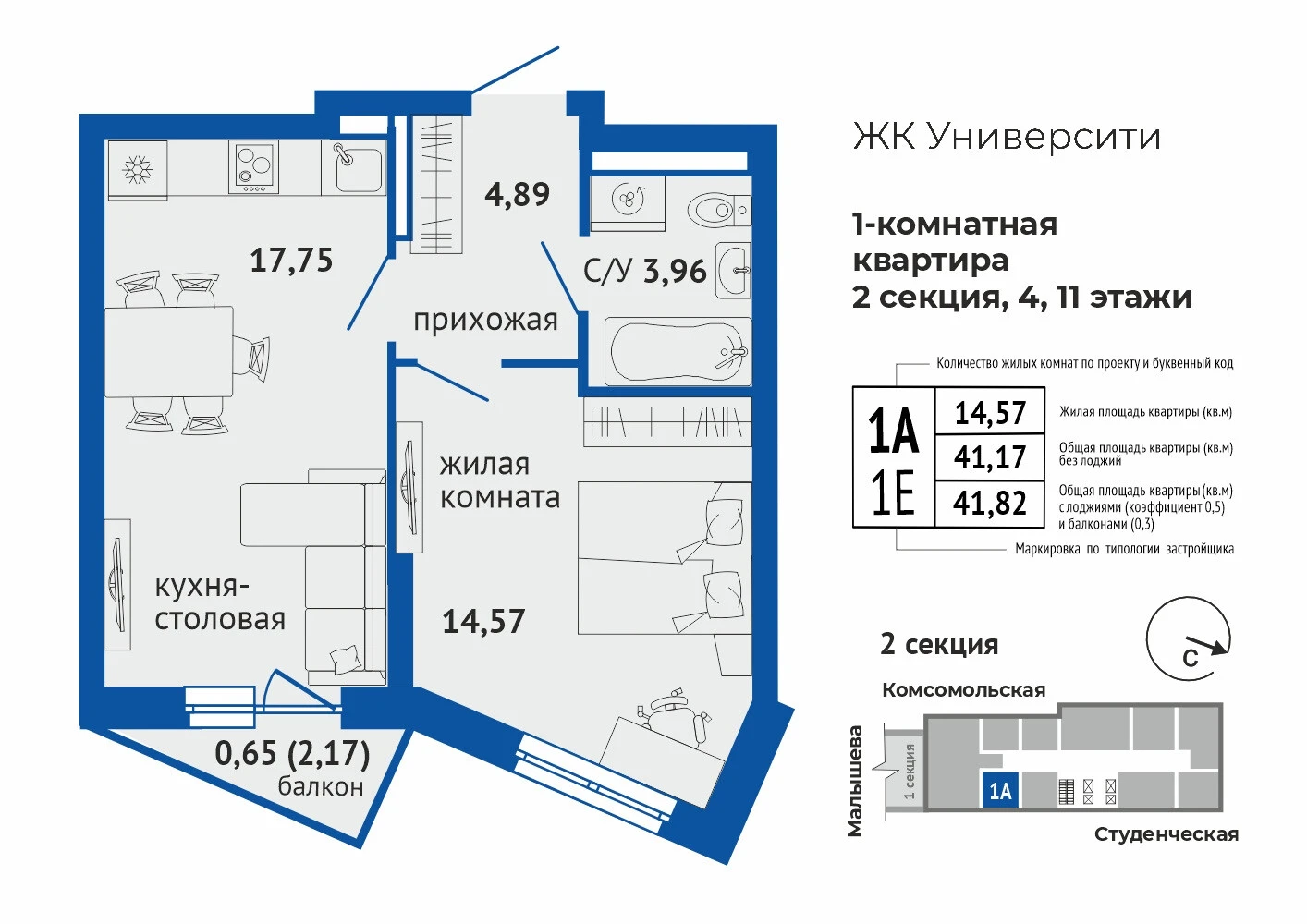 1-комнатная квартира №1771-комнатная квартира №177
