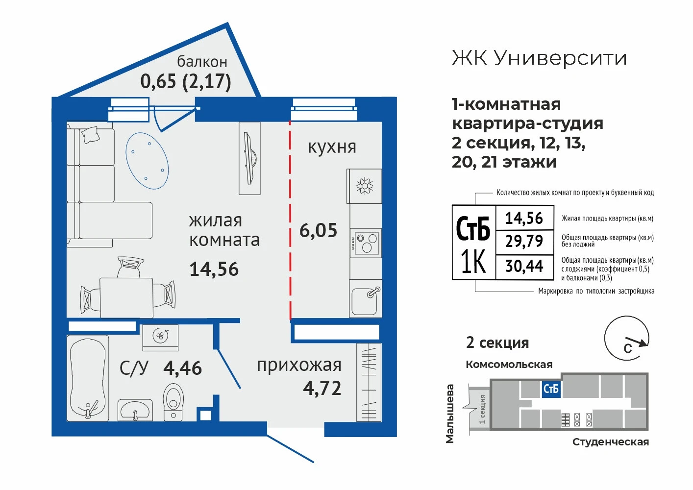 1-комнатная квартира №1901-комнатная квартира №190