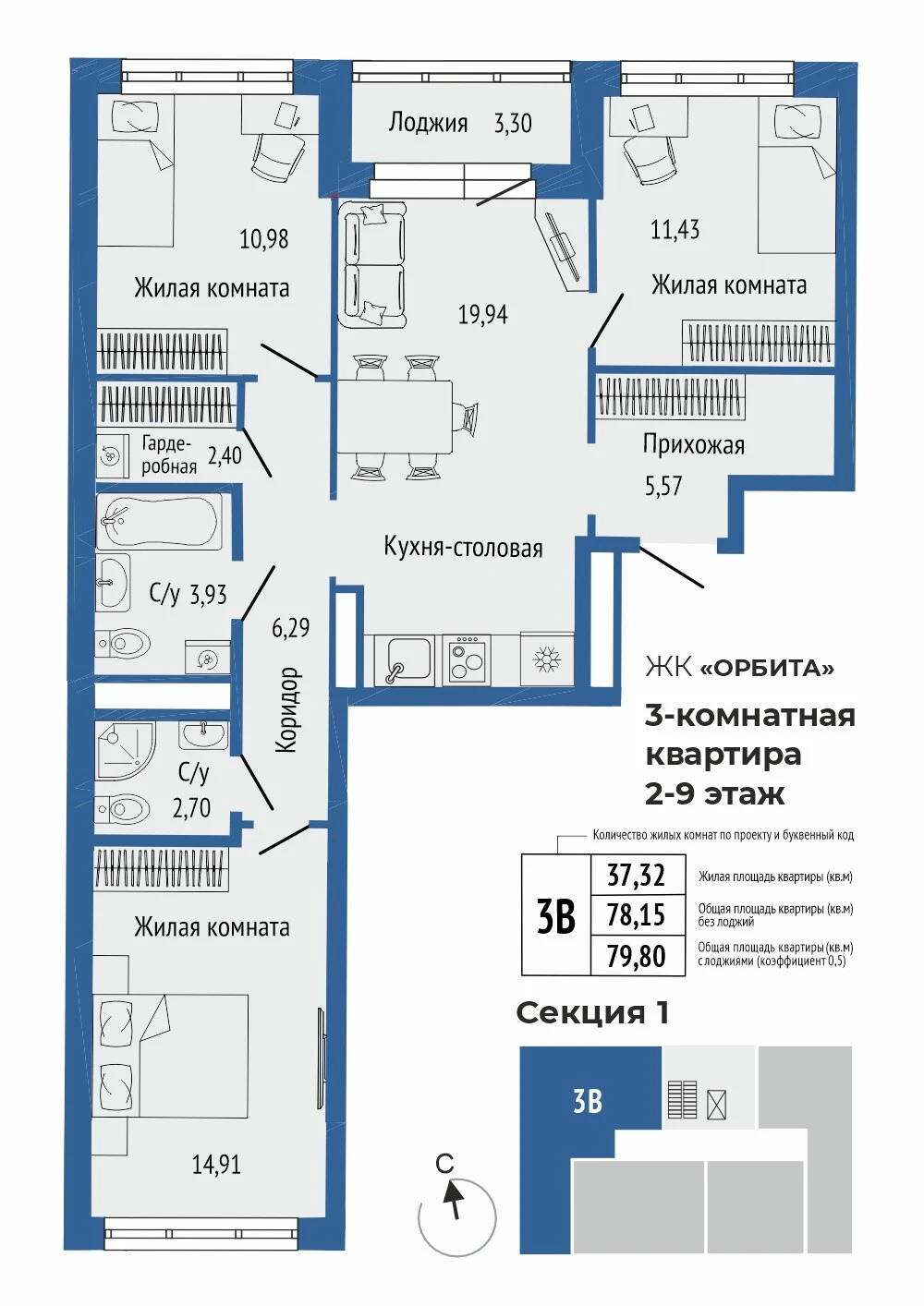 ЖК Орбита, дом 1 (секции 1-2) Подъезд