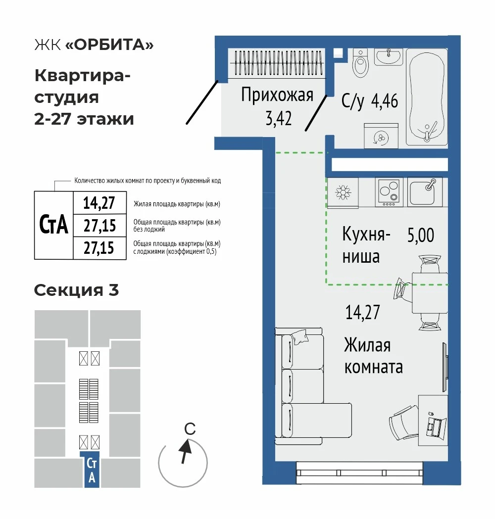 1-комнатная квартира №2611-комнатная квартира №261