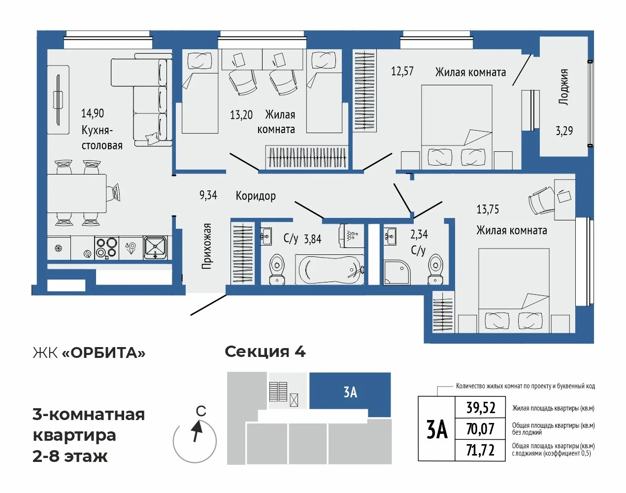 3-комнатная квартира №113-комнатная квартира №11