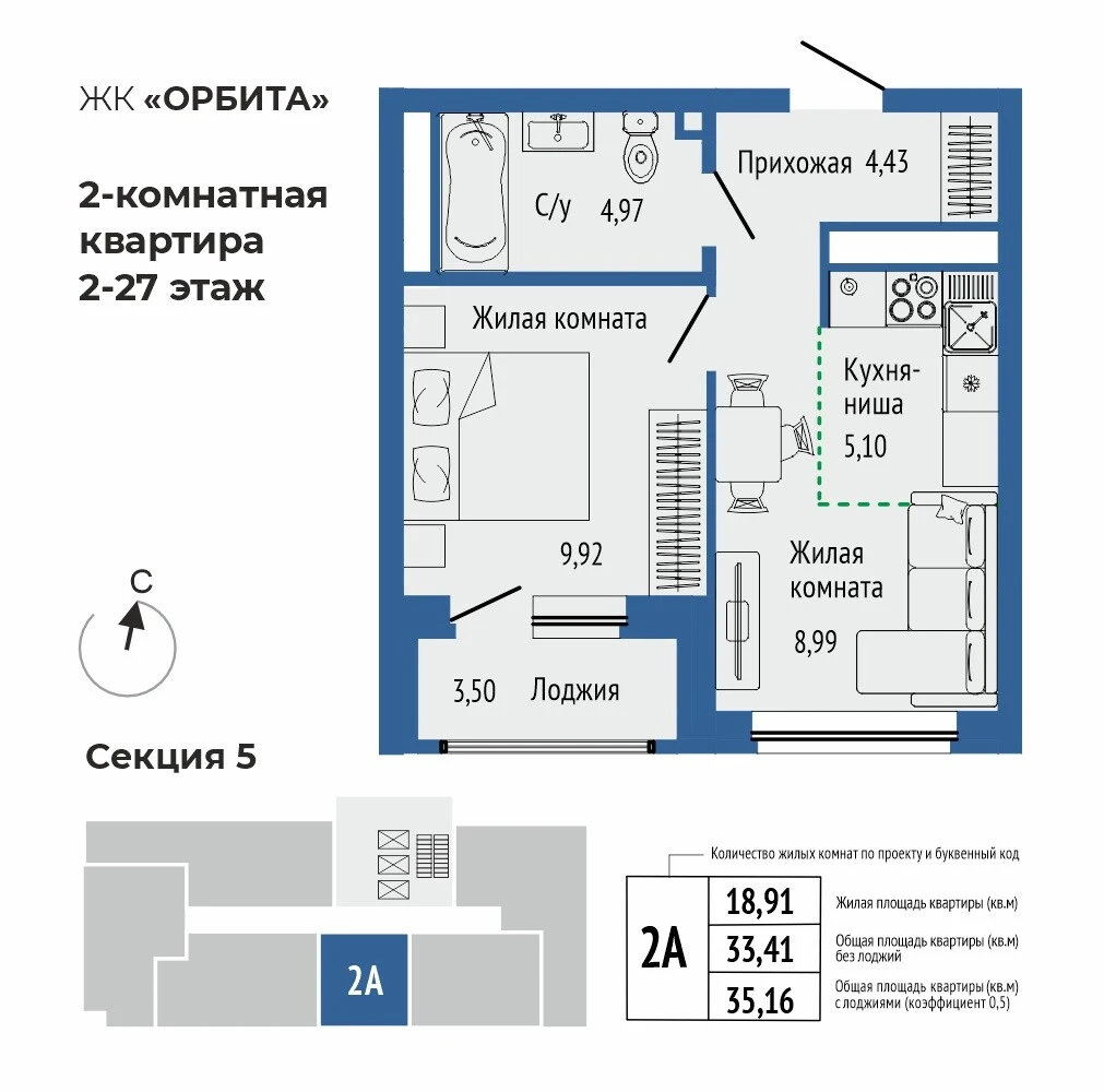2-комнатная квартира №1582-комнатная квартира №158