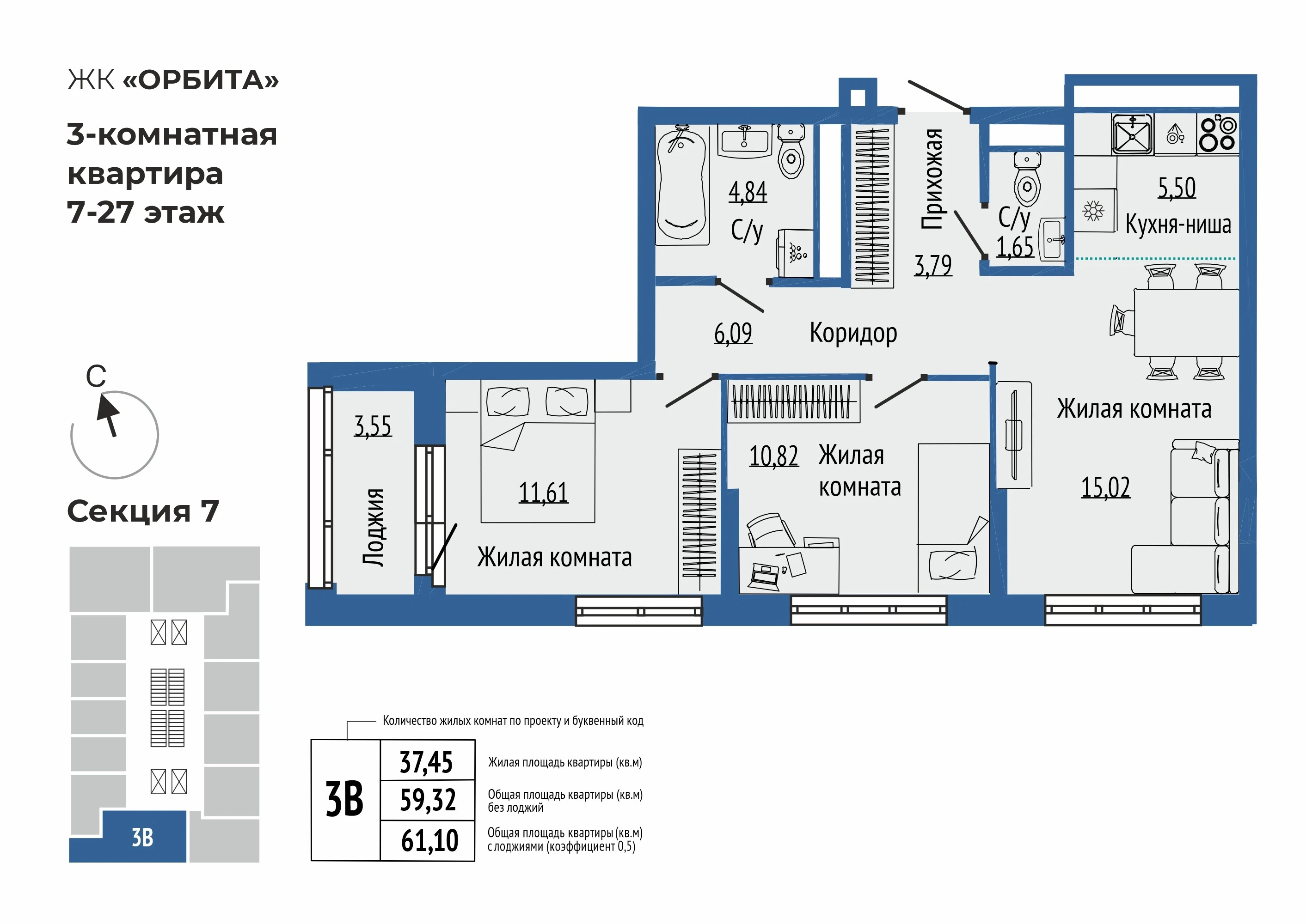 3-комнатная квартира №4883-комнатная квартира №488