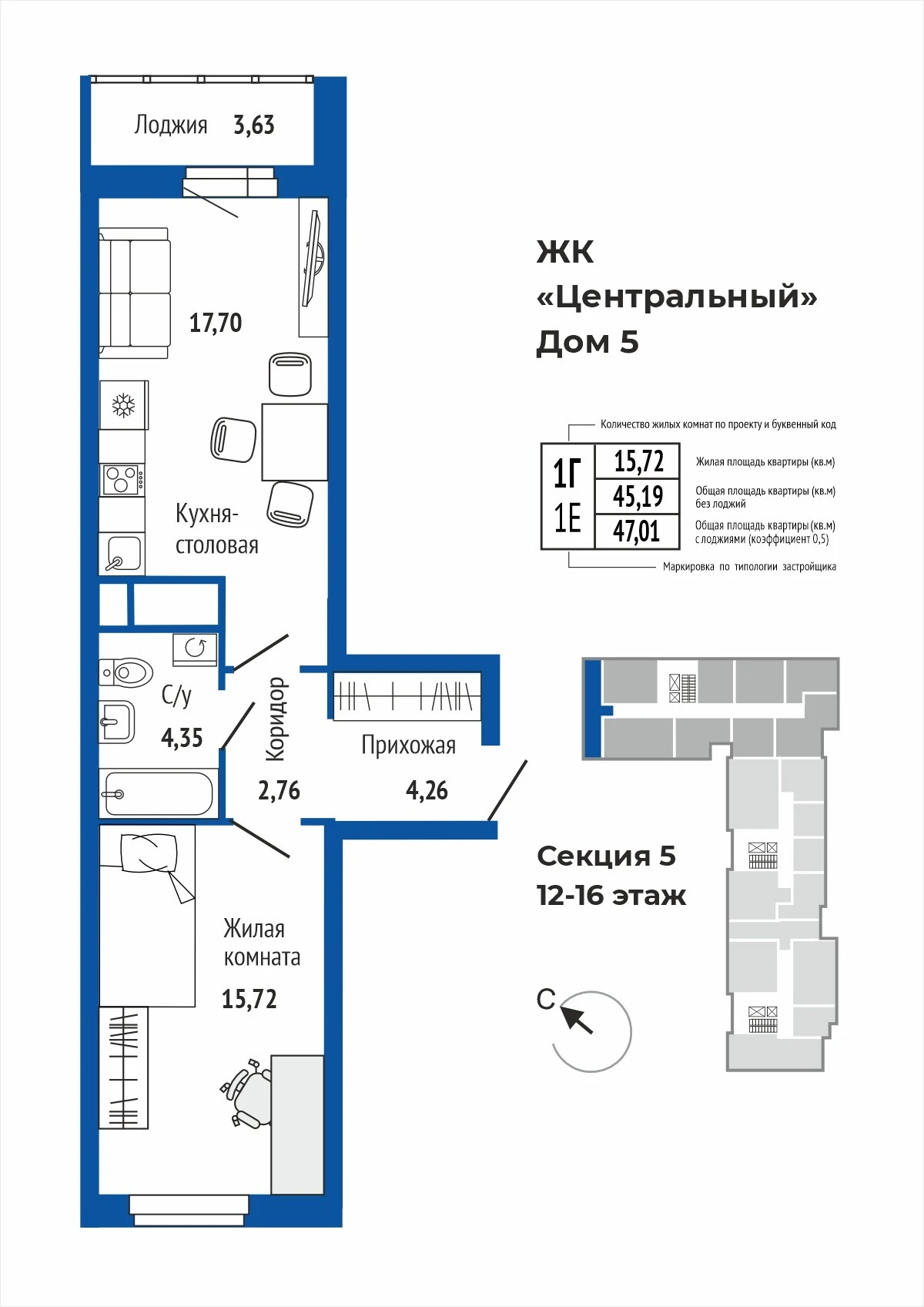 1-комнатная квартира №1071-комнатная квартира №107