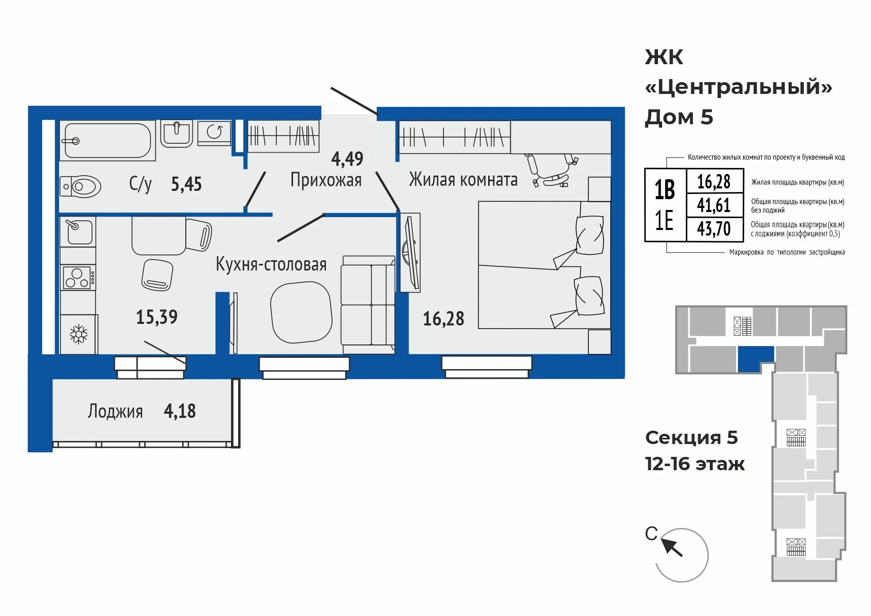 1-комнатная квартира №1231-комнатная квартира №123