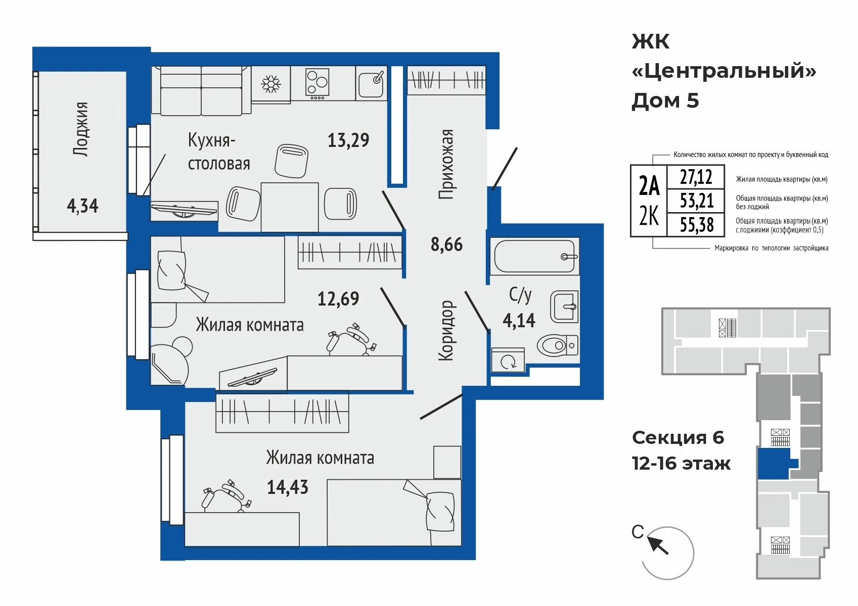 2-комнатная квартира №2132-комнатная квартира №213