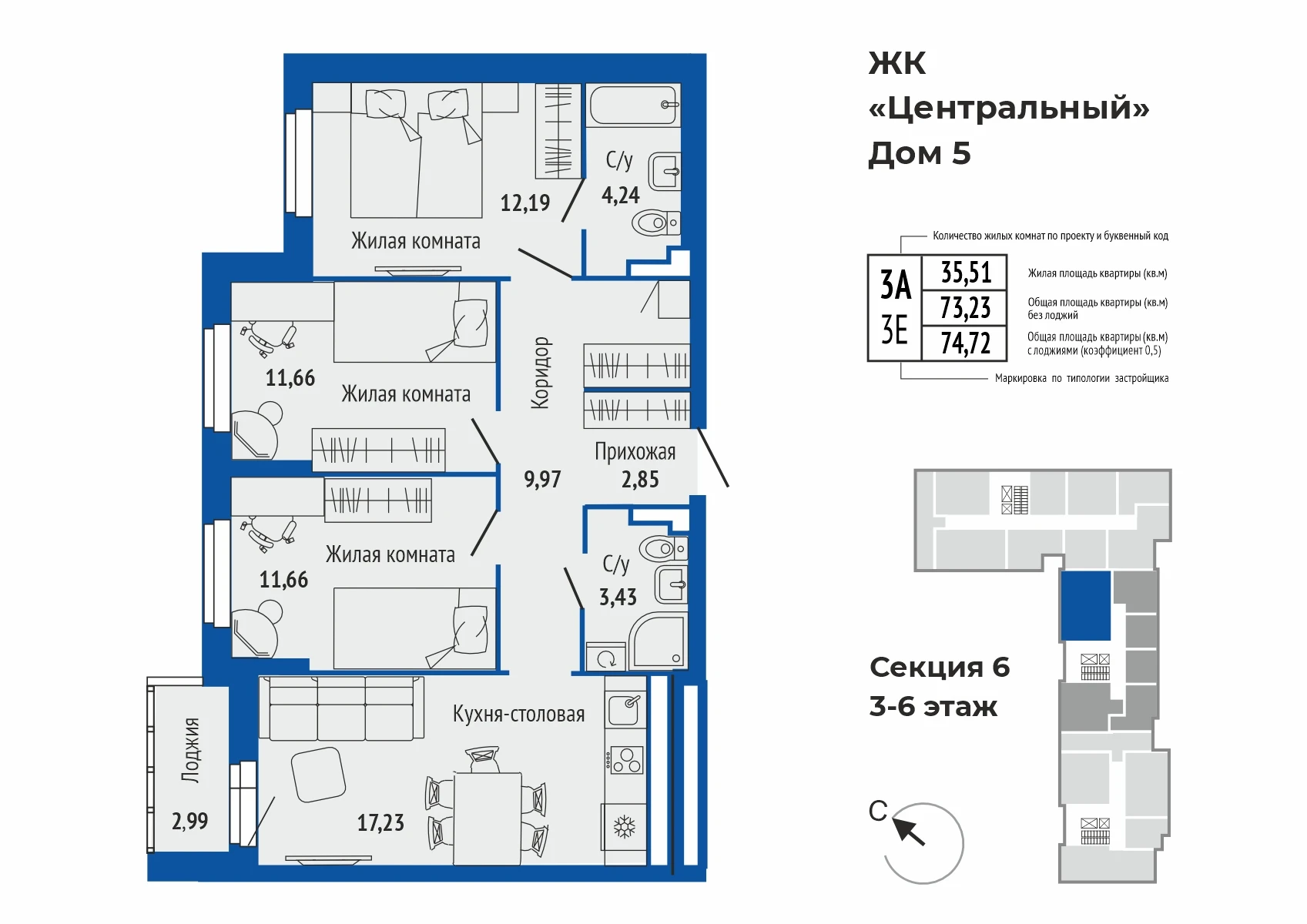 3-комнатная квартира №1423-комнатная квартира №142