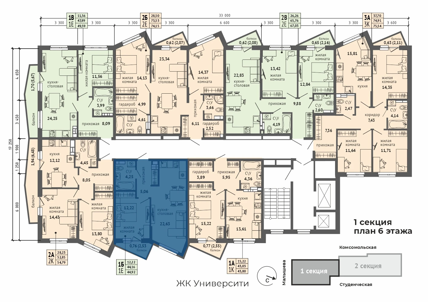 1-комнатная квартира №301-комнатная квартира №30