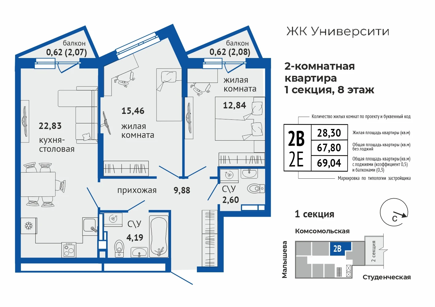 2-комнатная квартира №482-комнатная квартира №48