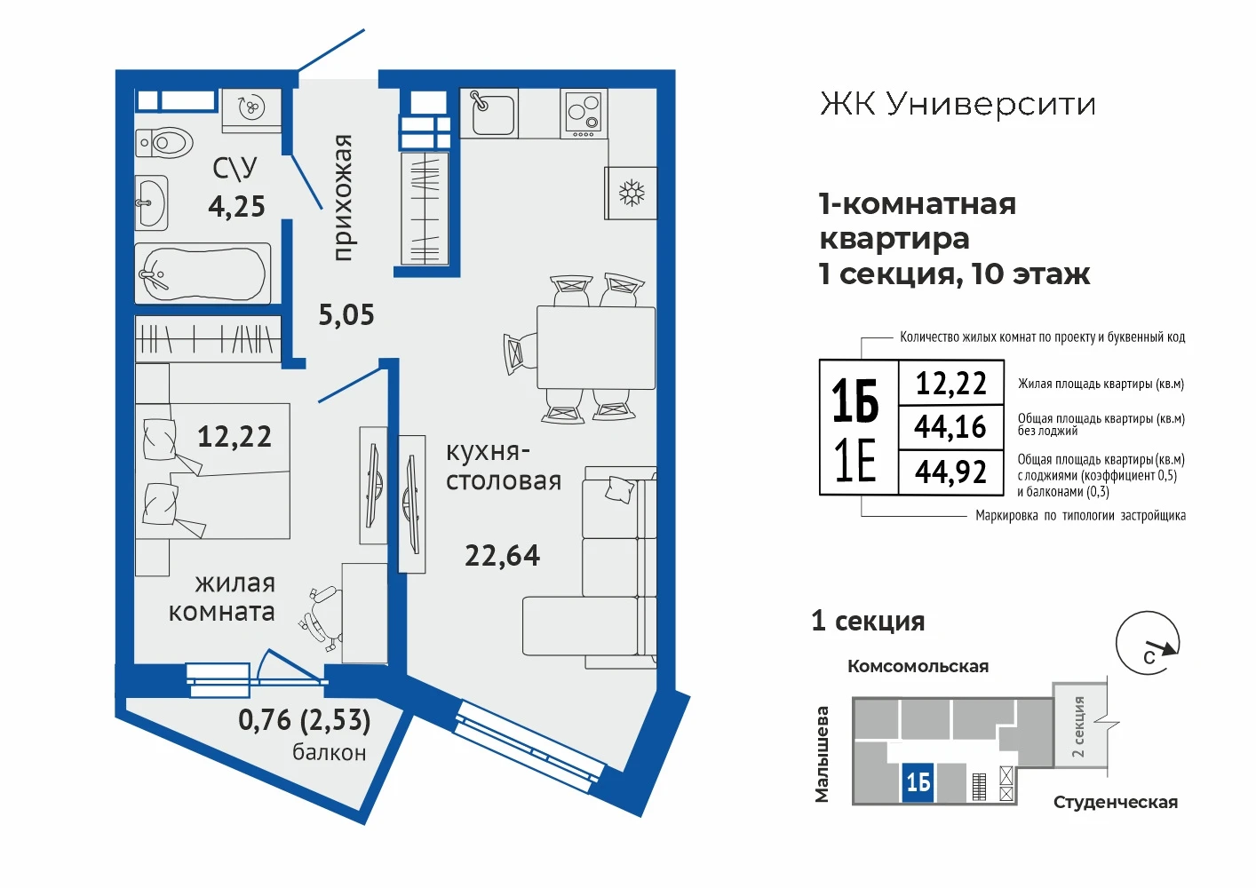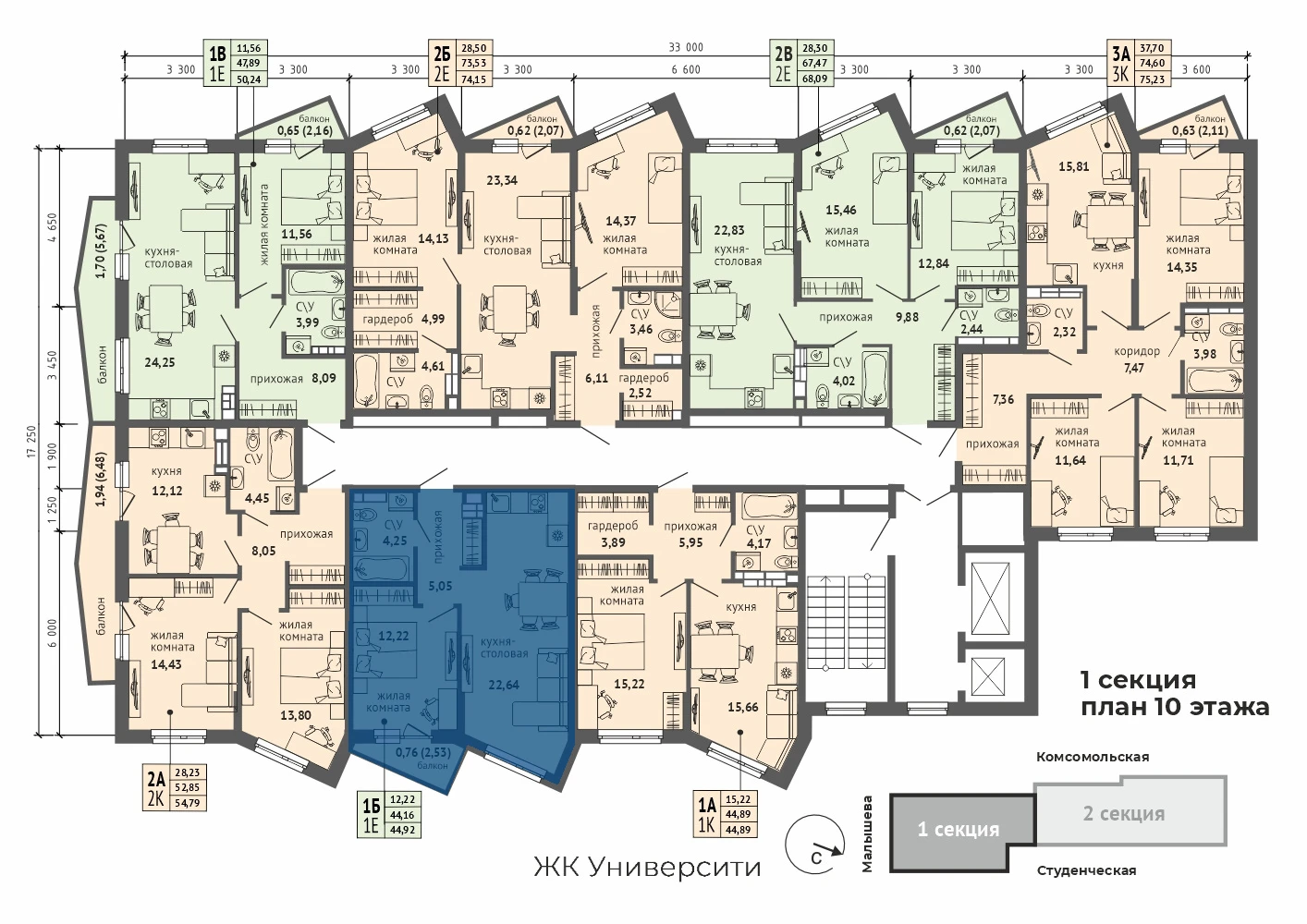 1-комнатная квартира №581-комнатная квартира №58