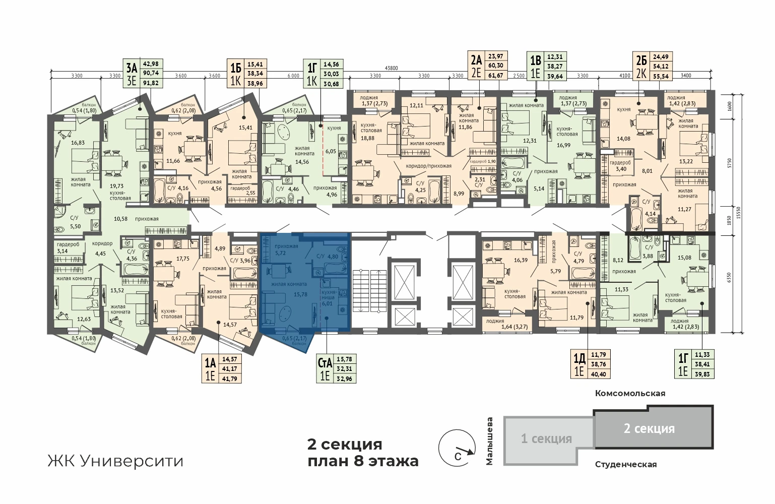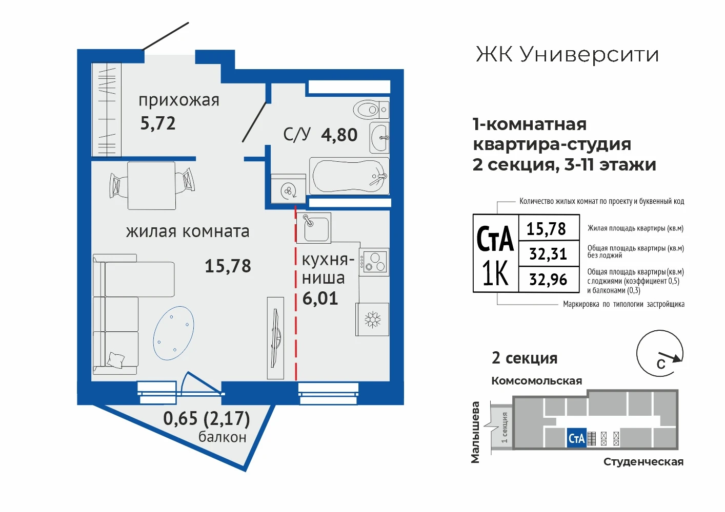 1-комнатная квартира №1461-комнатная квартира №146